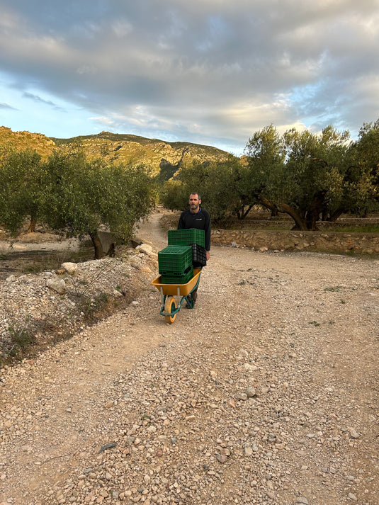Perched within the rugged beauty of Els Ports National Park in Catalonia, our olive grove is a testament to both nature’s resilience and human craftsmanship. Carved into the mountainside, ancient trees with gnarled trunks and silvery-green leaves thrive on hand-built stone terraces—structures that capture rainwater, regulate temperature, and create the perfect microclimate for exceptional olives. These terraces, meticulously stacked since generations, absorb the sun’s warmth by day and release it at night, nurturing the trees in a seamless blend of tradition and innovation.